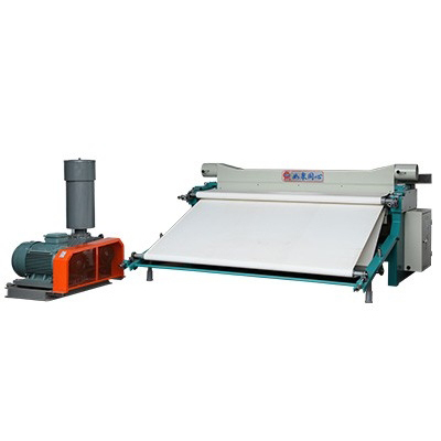 本機是利用輸送帶將皮革帶入,通過三組0.15~0.20mm間隙的吹風口,配合鼓風機、離心風機及集塵箱來達到消除皮粉,清潔皮革的目的。該機械與簡易打粉機相比提高80%的效率,吸塵效果明顯,并且錯作簡便、速度快,可做無極變速,鼓風機輸出量為300m3/H,配合使用的離心風機吸入量為13160m3/H。